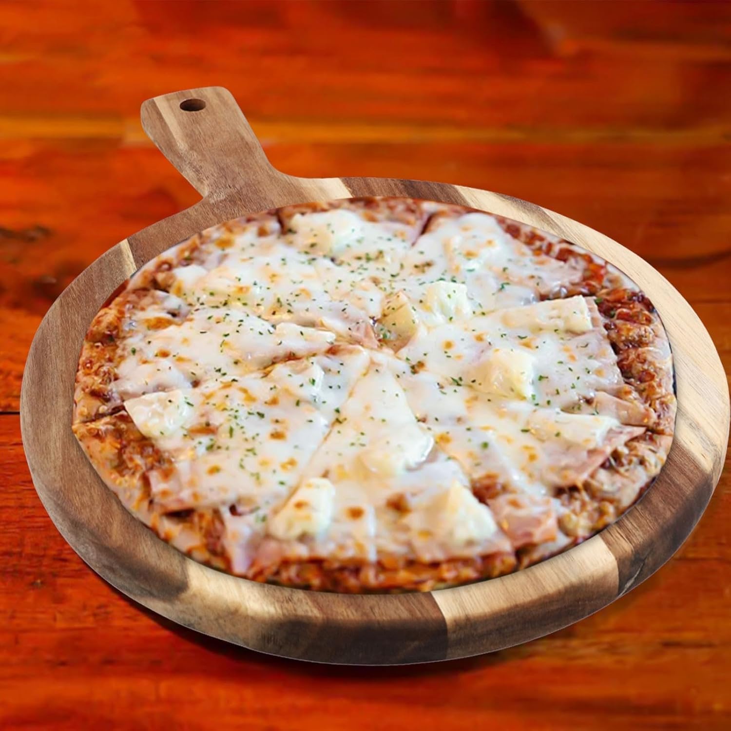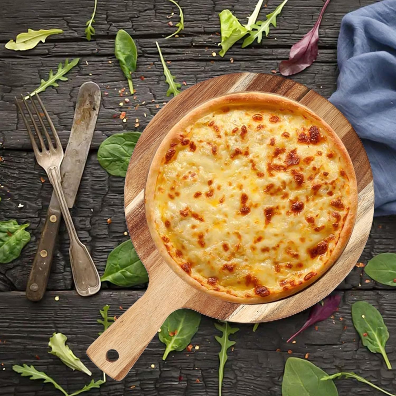 - [ Multi-Purpose for Cutting & Serving ] This Round Pizza Board is incredibly versatile with a double-sided design suitable for chopping, slicing, and serving. It excels as a Charcuterie Serving Board for artfully presenting meats, cheeses, and appetizers. Whether used as a Pizza Serving Board or for everyday meal prep, it helps create impressive food displays perfect for entertaining.