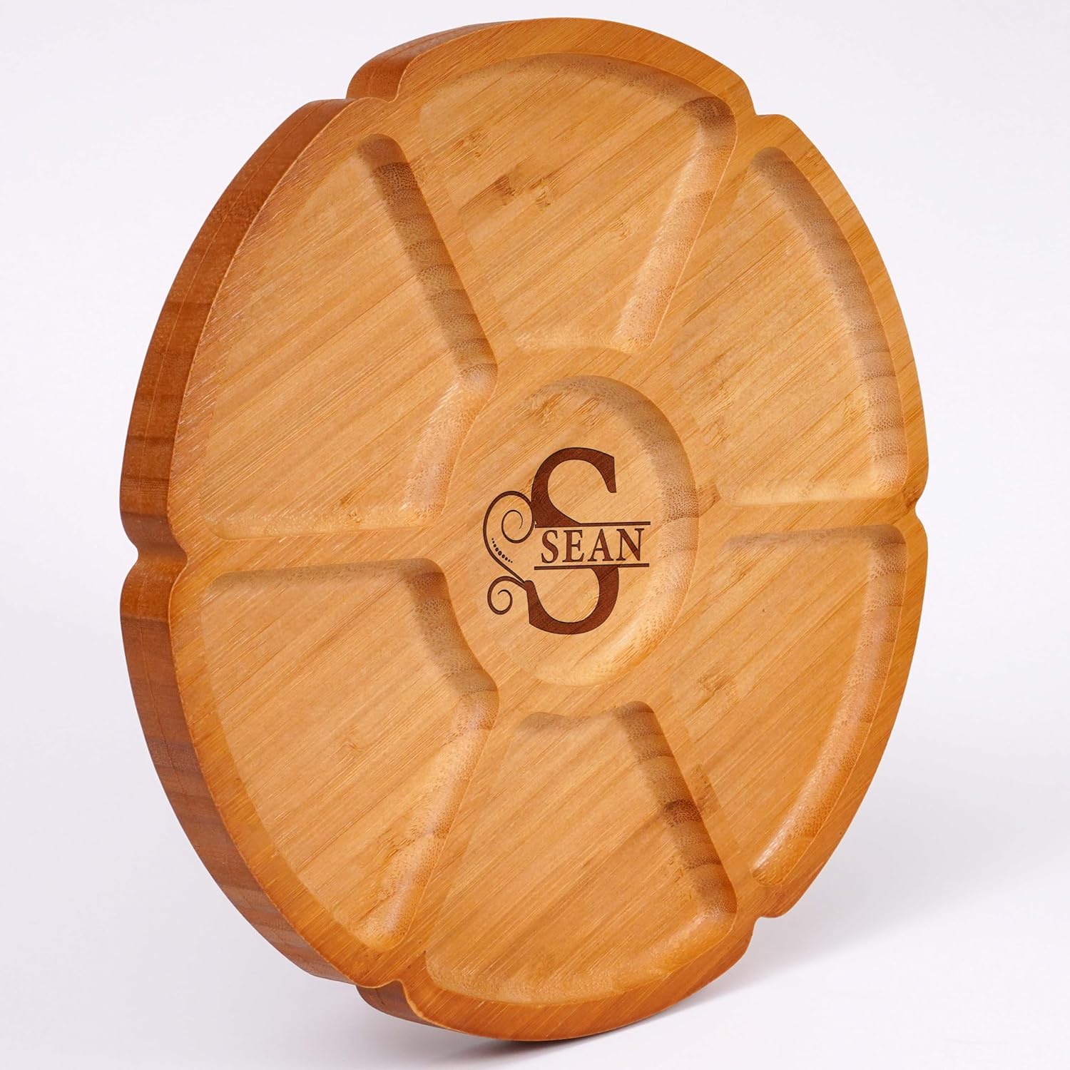 Custom Engraved Bamboo 11" Serving Tray β Personalized 7-Divided Flower Petal Platter, Perfect for Snacks, Appetizers, Charcuterie, Parties, Weddings, Housewarming, and Entertaining Gifts