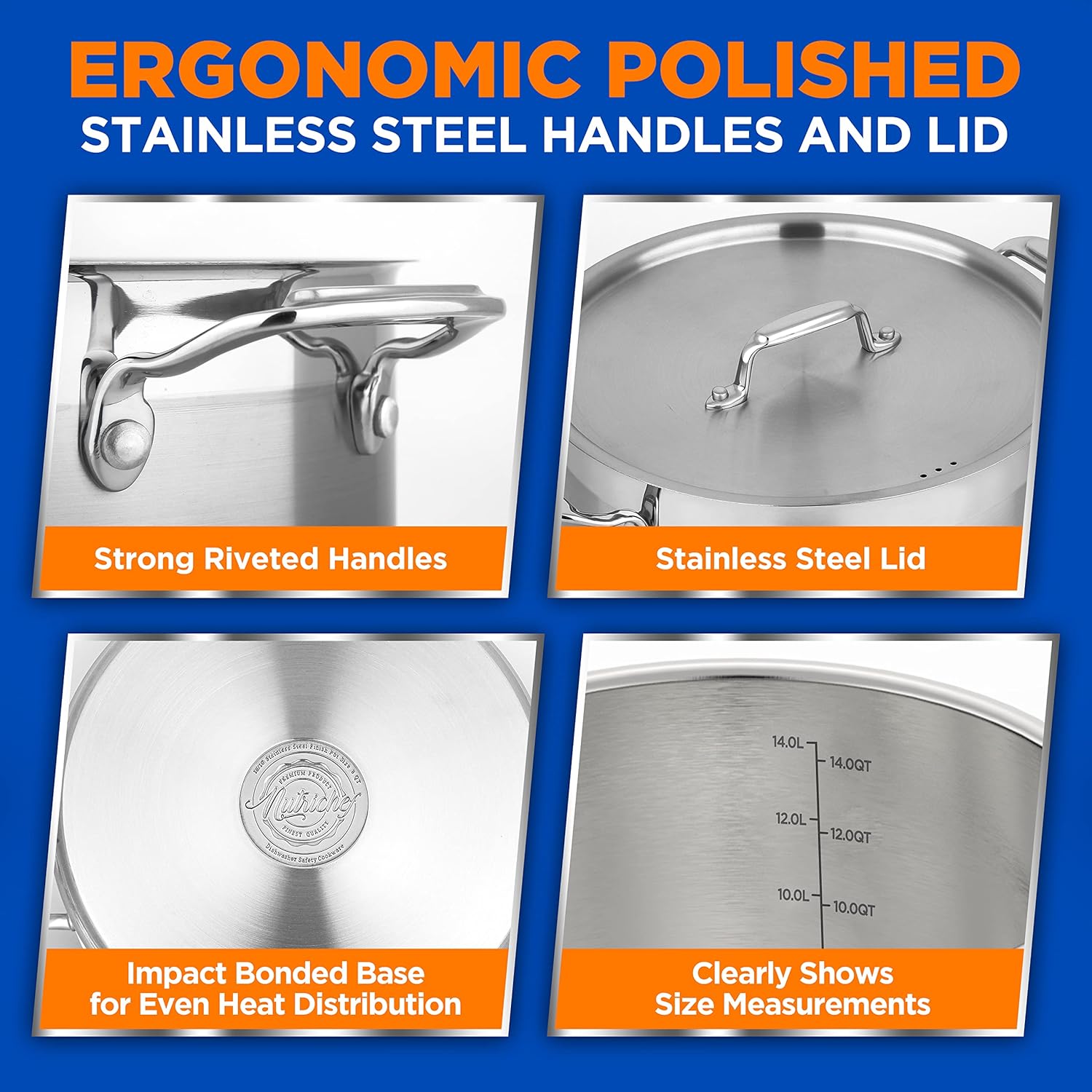 - COOKTOP COMPATIBILITY: This stainless steel cookware stockpot is compatible with gas, induction, and ceramic, perfect for even the most seasoned cooks. You can also use this as your soup pot, boiling pot