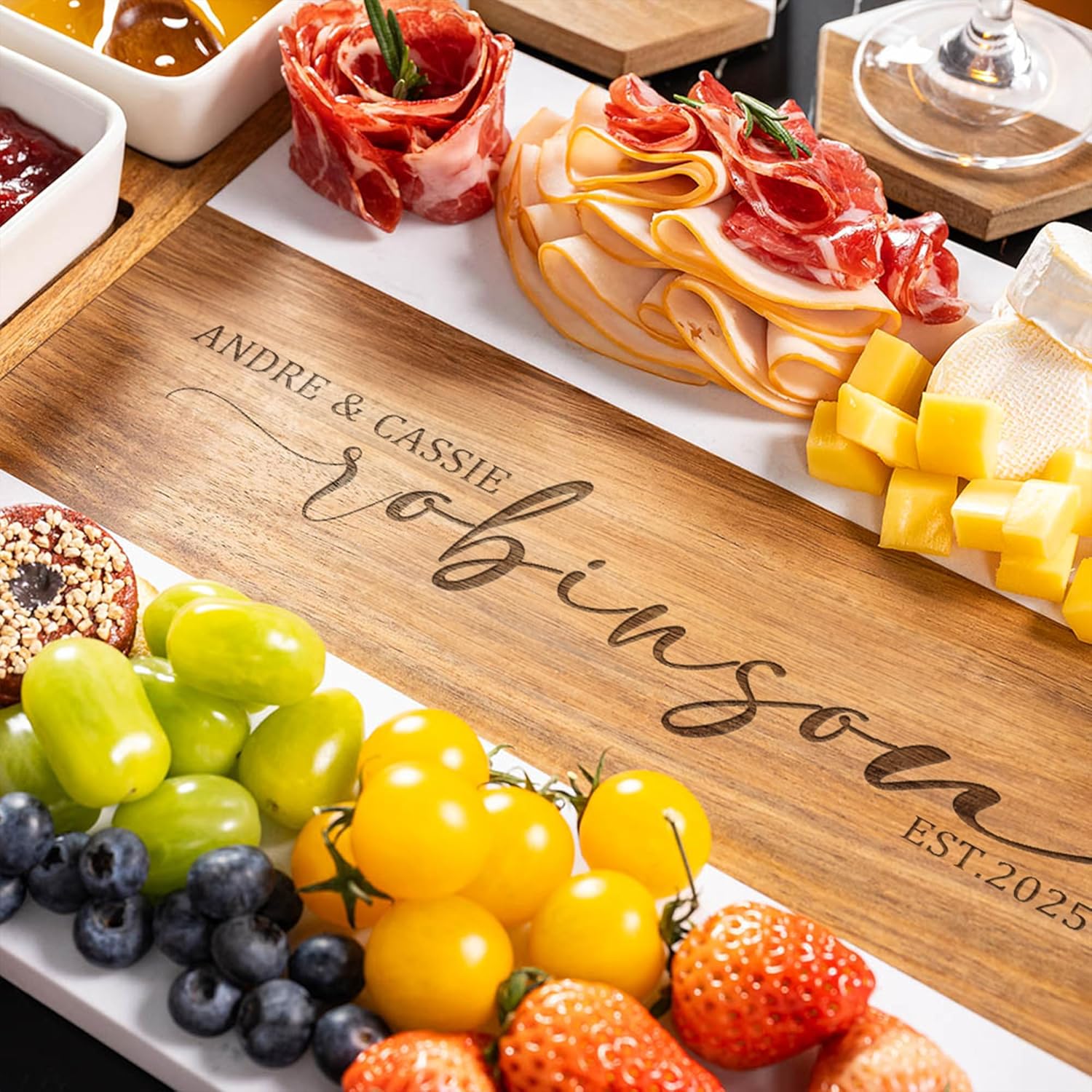 Personalized Charcuterie Board, Custom Marble Cheese Boards for Bridal Shower Gifts, House Warming Gifts New Home, Wedding Gifts for Couples (Style 4)