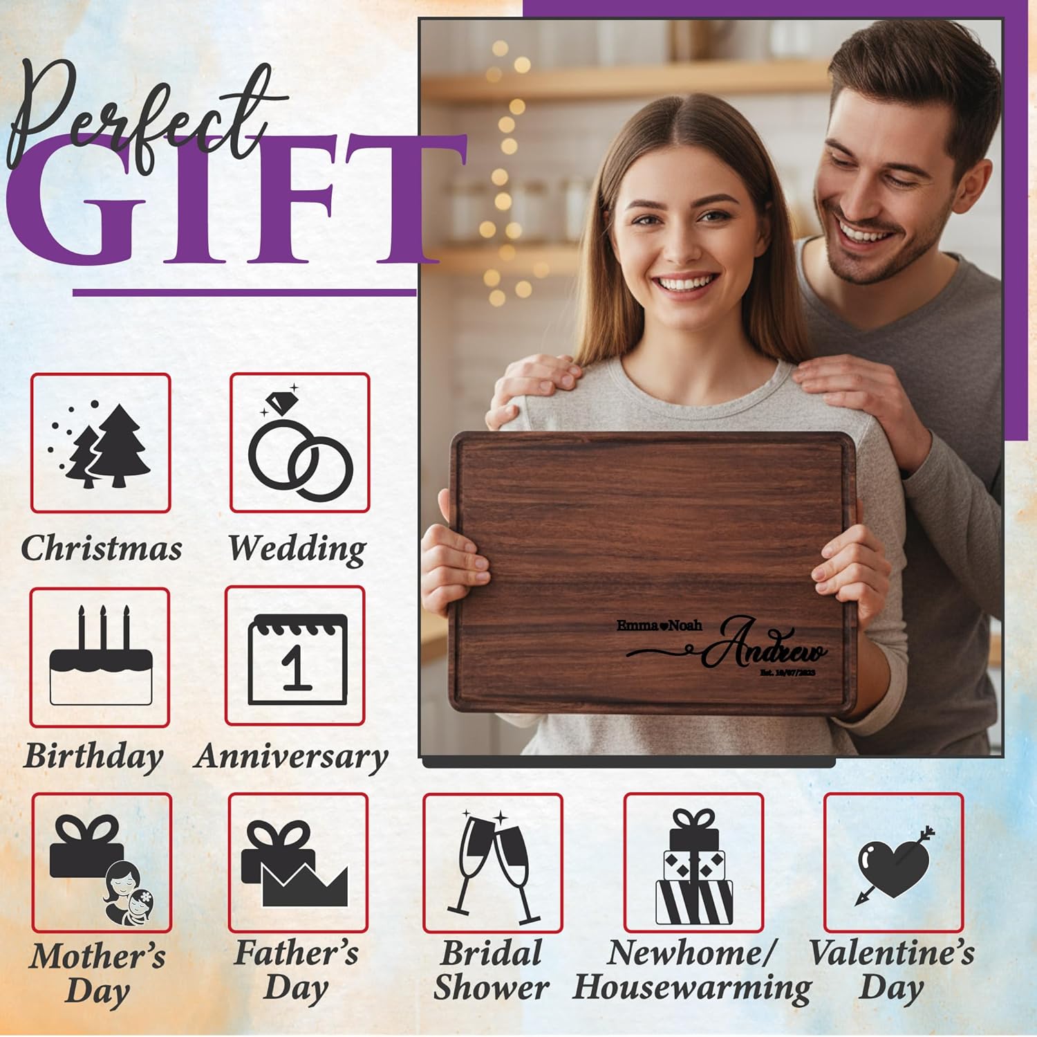 - 🌟 Unique Personalized Gift for Couples Celebrate love with a custom-engraved cutting board—perfect for weddings, anniversaries, engagements, or housewarming gifts. A meaningful keepsake they'll use and treasure for years.