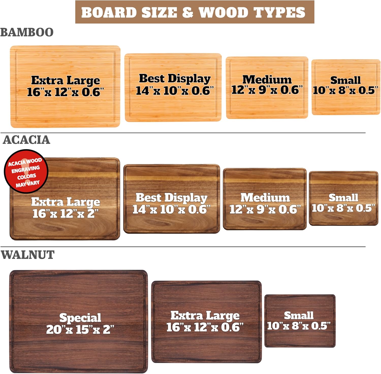 - Material : Acacia Wood, Bamboo, Walnut Wood, Wood